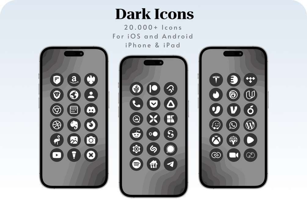 ✨ 60.000+ Icons for iOS iPhone , iPad and Android made in 3 different variants black , dark and light✨
